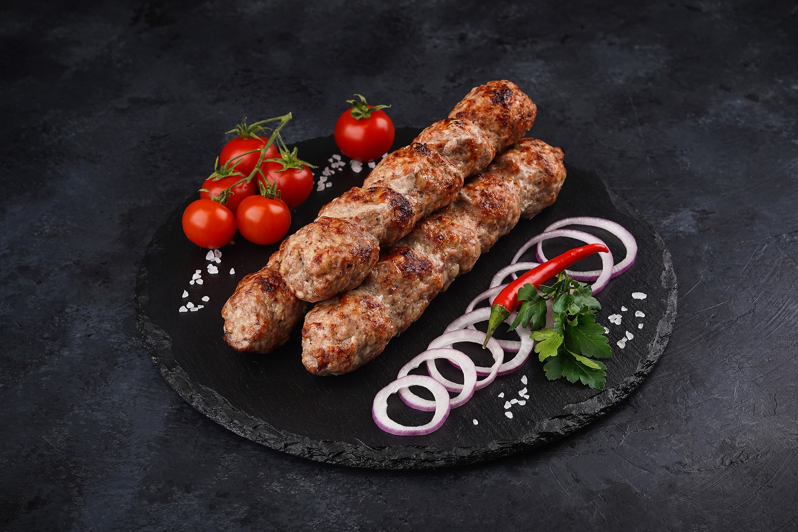 Ароматный люля-кебаб из смеси свинины и говядины, приготовленный на мангале. Отлично сочетается с овощами.