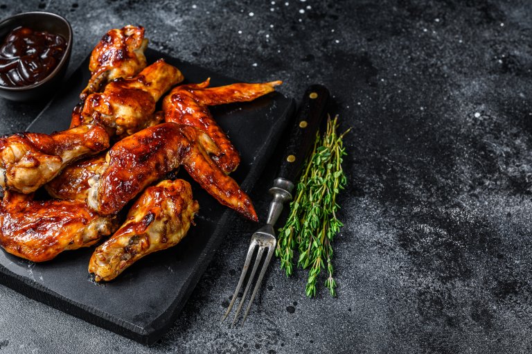 Сочные куриные крылья, приготовленные на решётке на мангале. Отличный перекус или часть обеда.