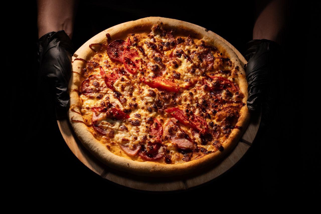Сборная пицца с колбасой, ветчиной, грибами, овощами и сыром. Сытная, ароматная и идеально пропечённая.