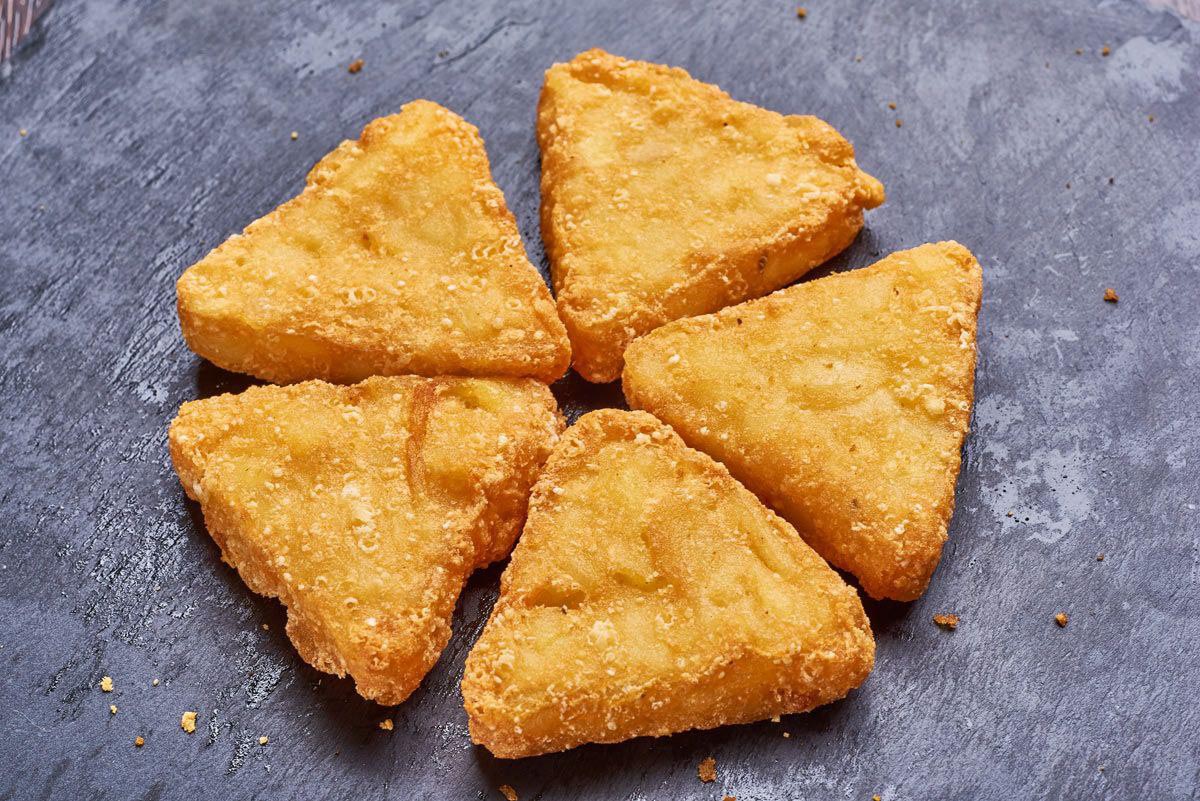 Ароматные кусочки сыра в хрустящей панировке. При обжарке сыр становится тягучим и нежным. Идеальны для перекуса или подачи к напиткам.
