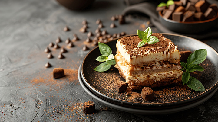 Воздушный тирамису на основе сыра маскарпоне, бисквита и кофе.